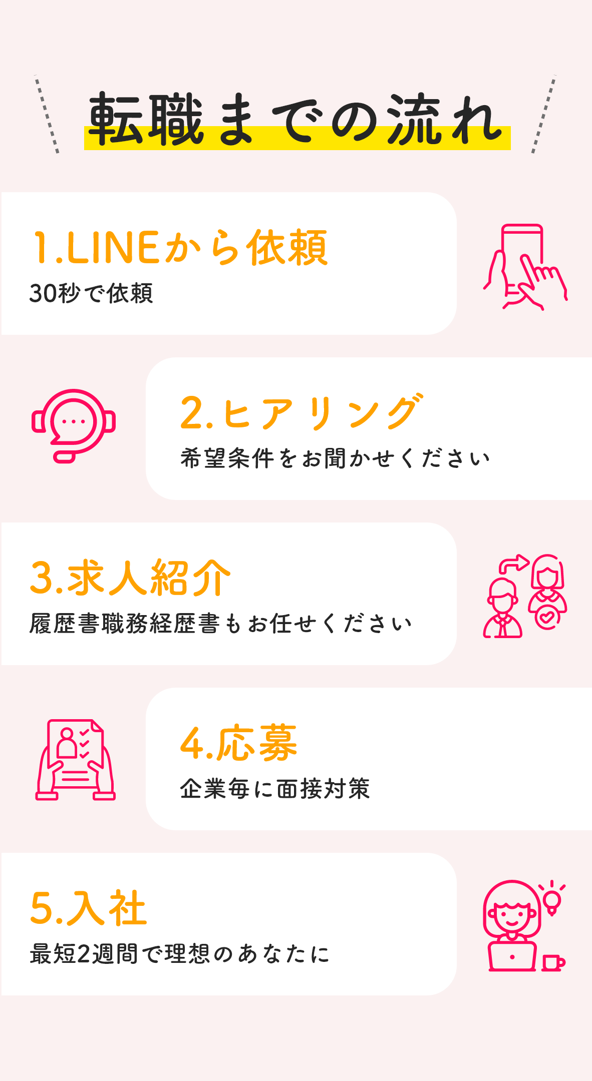 依頼から入社まで完全無料のサービスです。